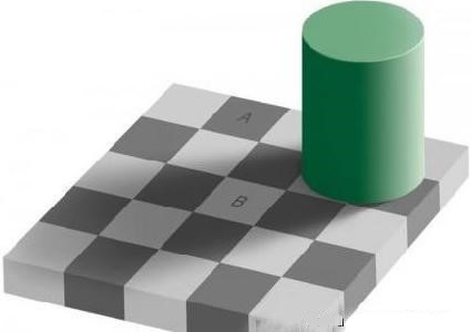 10、【你认为A和B所在方格颜色相同吗?】据说全世界只有0、003%的人和photoshop能看出它们的颜色是相同的。